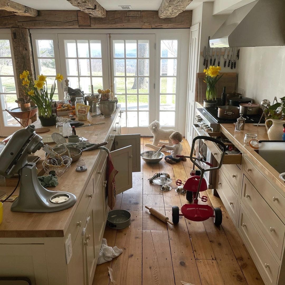 Maybe instead of standing in the kitchen, washing bottles with dried milk and scraping berries off the floor, you’re in a vineyard in Italy, living a slow life as a full-time artist.